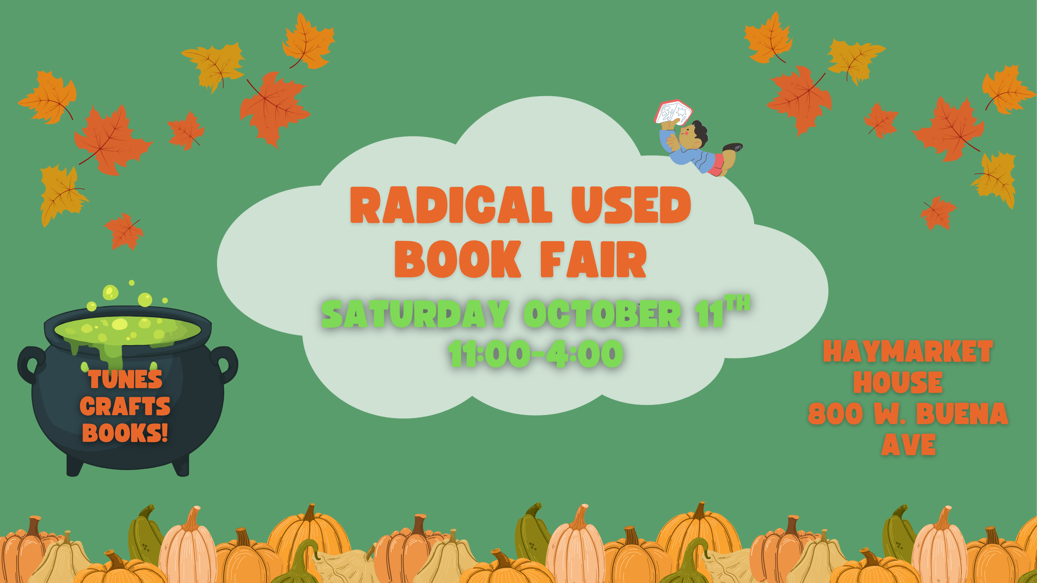 Hey Chicago! Join us Saturday, October 11th at Haymarket House (800 W. Buena Ave.) for our Radical Used Book Fair: Fall Edition!