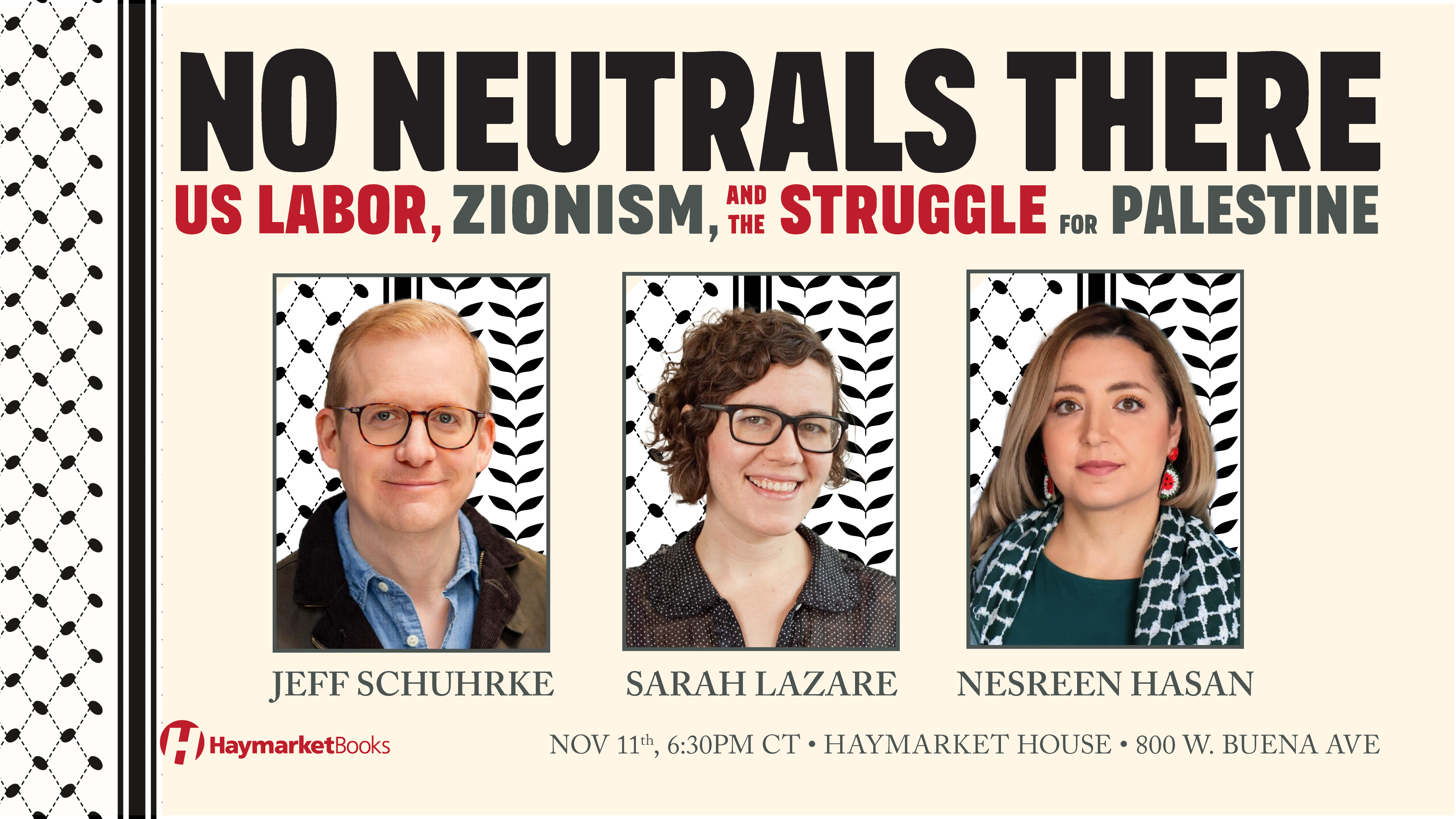 Join Jeff Schuhrke, Sarah Lazare, Nesreen Hasan in conversation about Schuhrke latest book No Neutrals There: US Labor, Zionism, and the Struggle for Palestine. A book that convincingly demonstrates that unions in the United States have never been silent or neutral on the question of Palestine. In fact, they have played a key role—in the initial Zionist colonization of Palestine, the foundation of the Israeli state in 1948, supporting US foreign policy commitments to Israel, and the ongoing suppression of the Palestinian liberation movement.