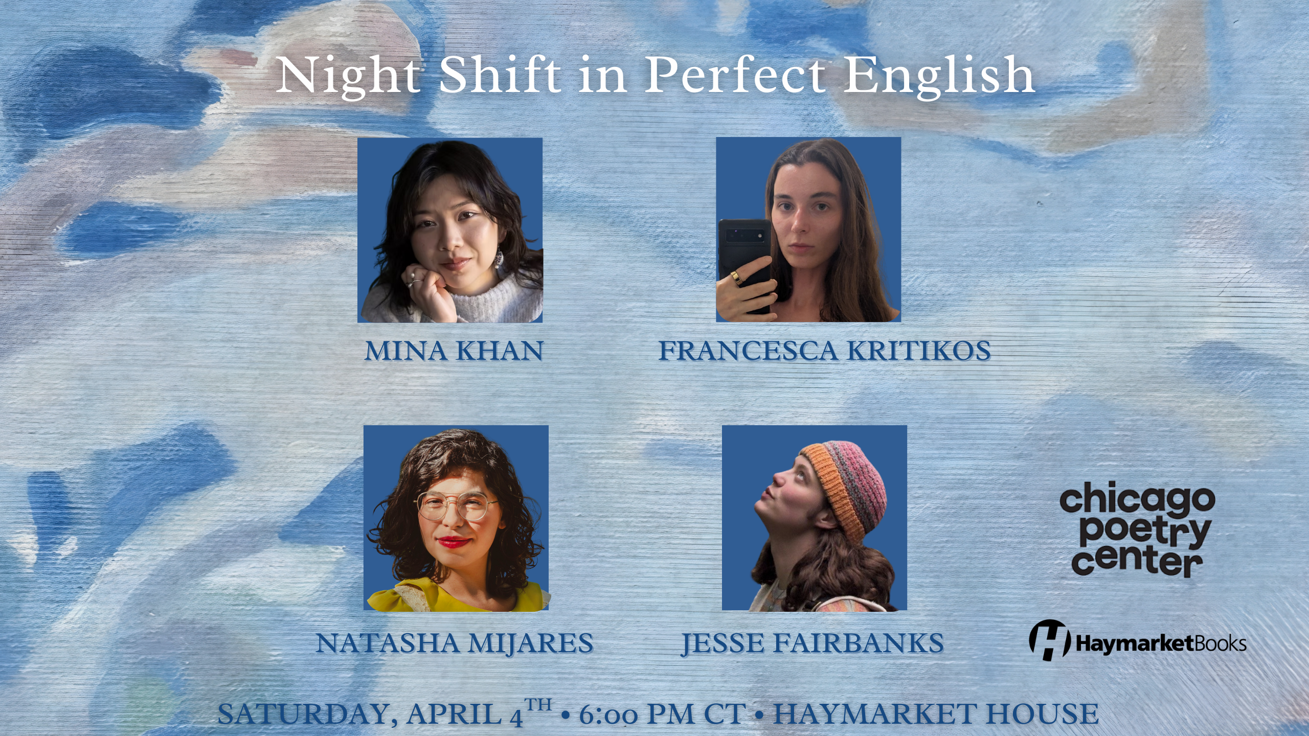 2024 Winner of the Two Languages Book Award, Mina Khan’s debut collection Night Shift in Perfect English is a tender, album-like retelling of the immigrant family post-American Dream. Drawing upon her Korean-Pakistani heritage, Khan discusses the NYC bodega in a gentrifying neighborhood, the aging body, and a rapidly deteriorating climate; Everyday violences-and the vivid joys that persevere.